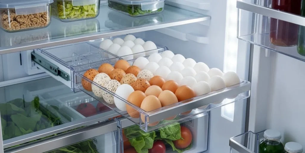 O armazenamento ideal dos ovos deve ser feito em local limpo, fresco e, preferencialmente, dentro da geladeira, utilizando organizadores específicos para ovos. Essa prática reduz o risco de contaminação e ajuda a preservar a integridade da casca, que atua como barreira protetora natural.